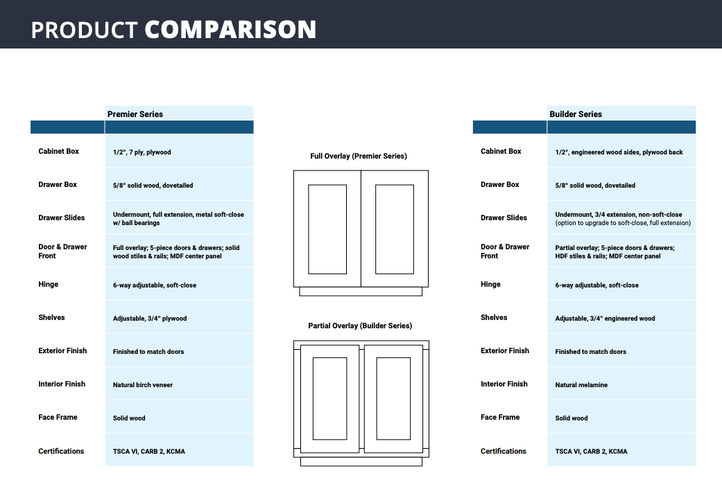 Below are the key measurements for our Premier and Builder Series cabinets.